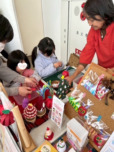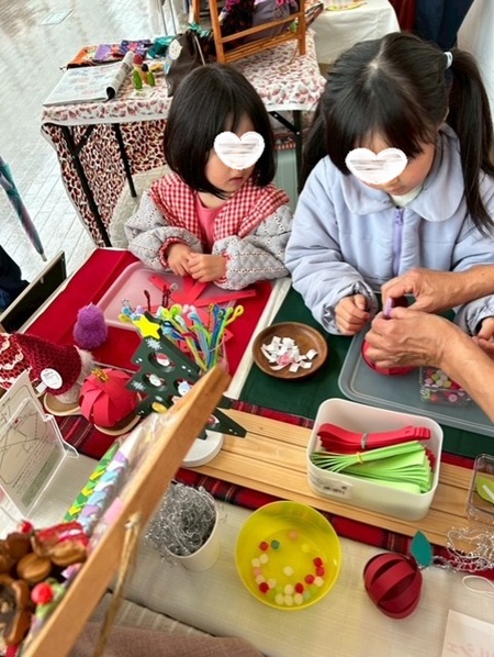 クリスマスのオーナメント作りのコーナーでは、