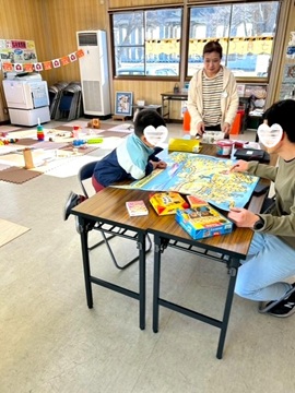 市民活動センター内では、ボードゲームが並べられ親子で楽しんでいました。
